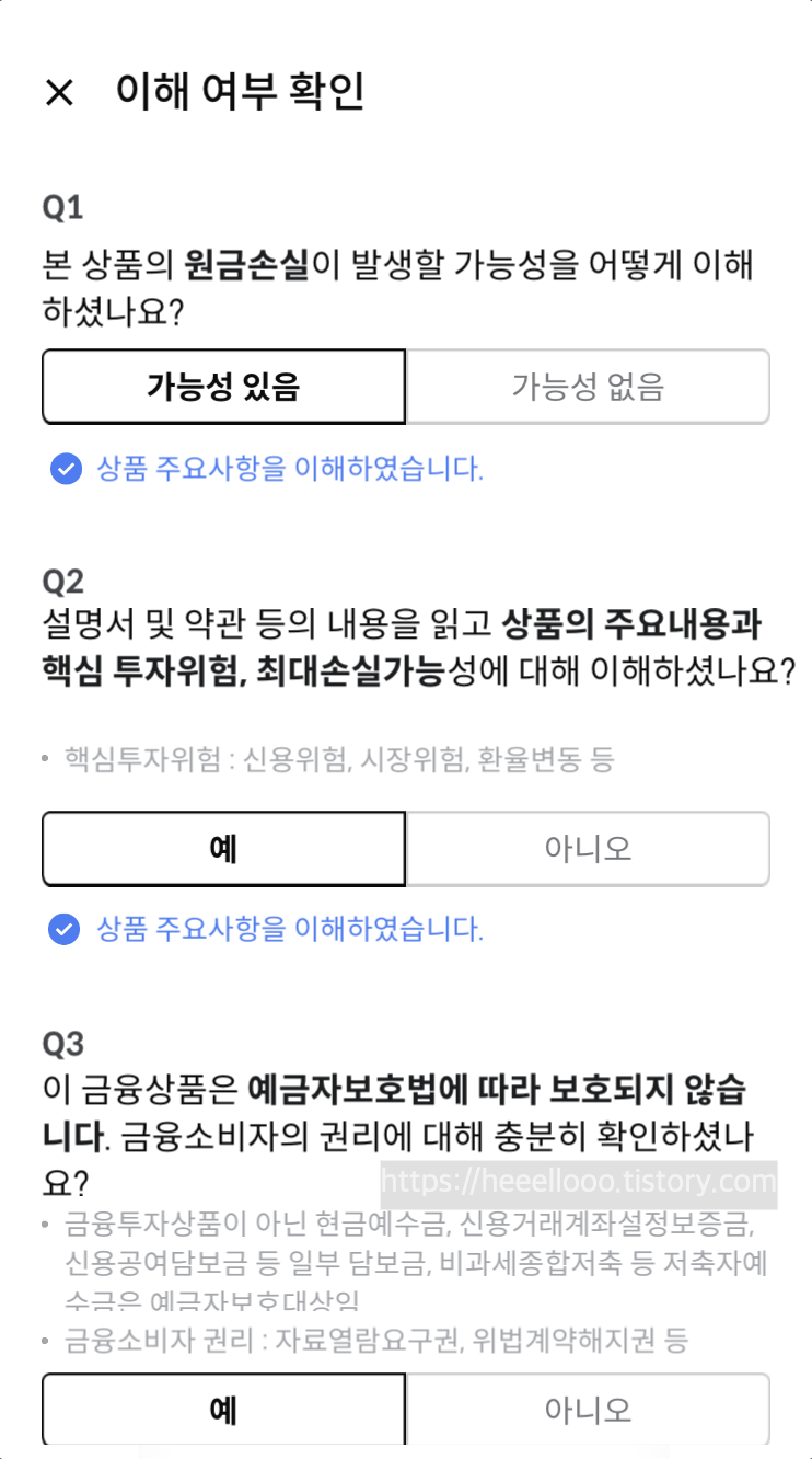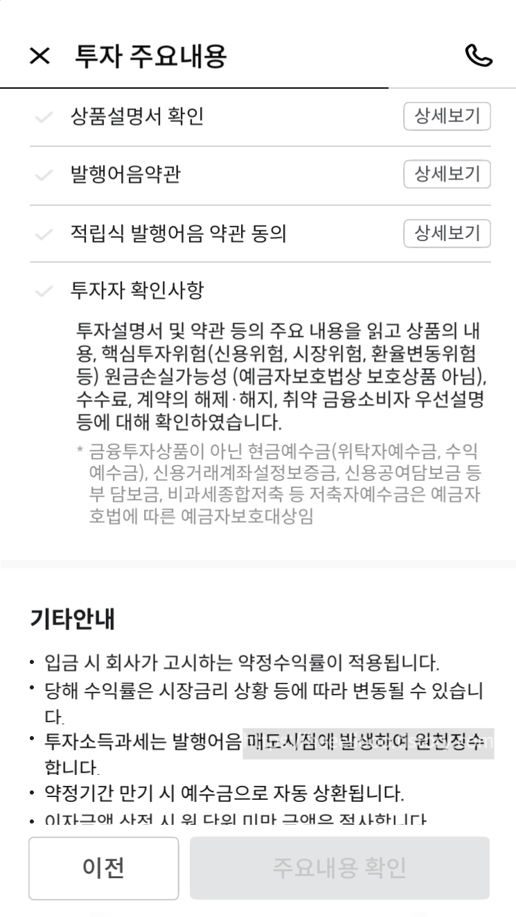 가입하면서 주의사항과 주요 내용에 대해 확인하는 과정입니다.